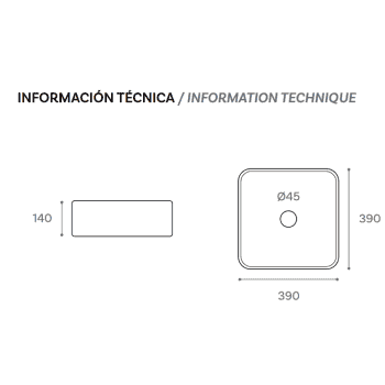 Posibilidad de usar como encimera-lavabo a pared o lavabo sobre-encimera sobre tapa de marmol, madera o solid surface