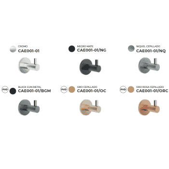 Acabados: Cromo Brillo, Negro Mate, Acero Inox, Black Gun Metal, Oro Cepillado, Oro Rosa Cepillado o Niquel Cepillado
