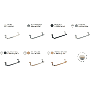Acabados: Cromo Brillo, Negro Mate, Acero Inox, Black Gun Metal, Oro Cepillado, Oro Rosa Cepillado o Niquel Cepillado