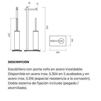 Escobillero pared Serie Practic fabricado en acero inox S.316