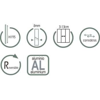 Mampara frontal Bypass corredera 2 hojas correderas apertura a ambos lados fabricado en aluminio acabado Cromo Brillo