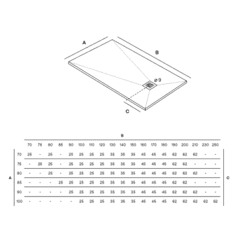 Plato ducha modelo Slate fabricado en aleación de resinas y cargas minerales, con superficie tipo antideslizante y diferentes terminaciones en acabados Mate