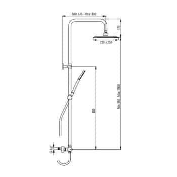 Columna ducha monomando modelo Maia fabricada en acero inoxidable Aisi 316 Acabado Cromo Brillo o Negro Mate