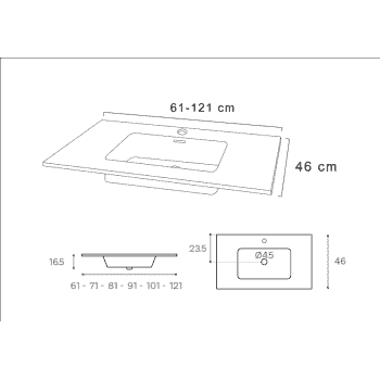Encimera modelo Slim fabricado en Porcelana vitrificada con rebosadero varias medidas y acabado Blanco Mate