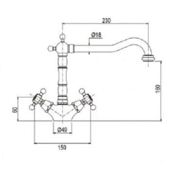 Altura para lavabos sobre-encimera desde base hasta boquillas espulsora de agua de 26cm