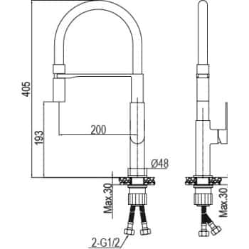 Monomando cocina caño alto modelo Alpha con termicaciones Cromo Brillo