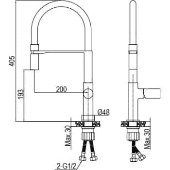 Monomando cocina caño alto modelo Alpha con termicaciones cromo brillo