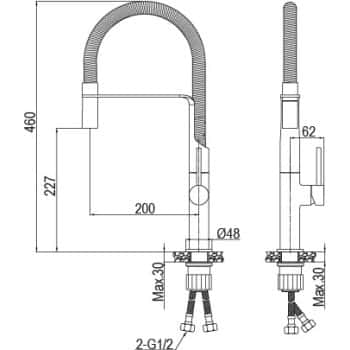 -Dispone de flexos Tucai (tubo flexible metálico), los cuales gracias a su flexibilidad nos dan una gran facilidad para evitar problemas con las medidas y el diseño del lavabo, y así poder transportar el agua de la red principal al propio grifo.