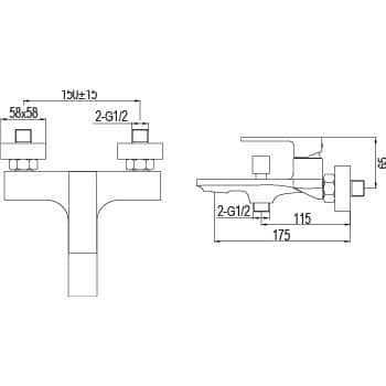 Termostática bañera Quadra en diseño cuadrado, fabricado en latón con terminaciones cromo brillo