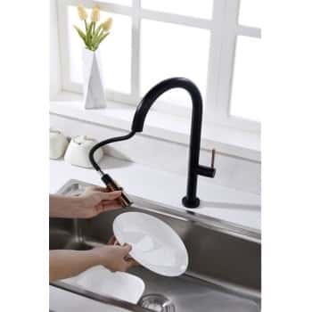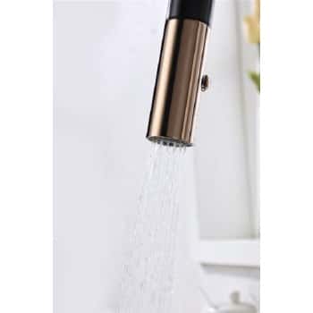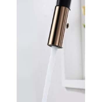 Monomando cocina modelo Samoa terminacion Negro mate con detalles en Oro Rosa