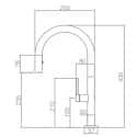 El conjunto de la grifería mide 43,5 cm de alto x 22,5 cm de largo.
