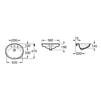 Lavabo modelo Aran ovalado similar en forma al modelo Java para encastrar en encimera, fabricado en porcelana blanca sanitaria acabada brillo