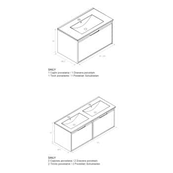 Mueble de 120 se componen de 2 modulos de 60+60cm con encimera porcelana 2 senos