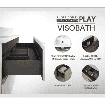 Mueble de baño suspendido modelo Granada 2 cajones extraibles en 7 terminaciones y tirador metálico en 3 terminaciones