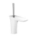Contrastes fascinantes y confort que apasiona aquí se fusionan: el mezclador monomando de lavabo PuraVida 110 con vaciador push open marca la pauta con sus superficies separadas con precisión en cromo y blanco. Así, el placer del agua cobra formas completamente excepcionales. Tan elegante es el arco del caño, tan fácil es manejar esta grifería. Haga realidad el baño de sus sueños con esta grifería y la gama completa PuraVida plasmando sus ideas personales. Todo será entonces de una pieza.