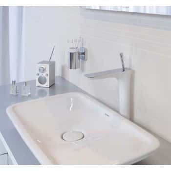 El mando de joystick de vanguardia y en filigrana permite manejar la grifería con suavidad y precisión. El amplio espacio entre el caño y el lavabo crea una cómoda ComfortZone y, de tal modo, mucho espacio para el cuidado corporal, para lavarse el cabello o para llenar recipientes. El formador de chorro enrasado y de ángulo giratorio posibilita un chorro de agua suave y agradable exactamente allí donde se lo desea. Muy práctico: Con el vaciador push open, el caño se abre y se cierra con suma facilidad pulsando ligeramente.