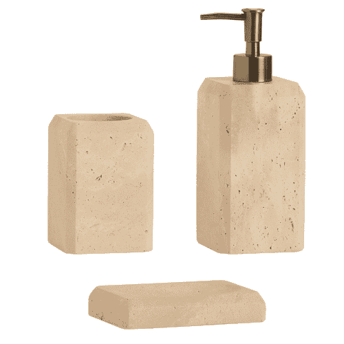 Juego accesorios de baño fabricado en Marmol Natural Travertino