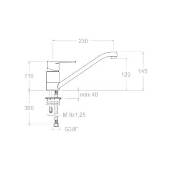 Monomando fregadero modelo Titanium fabricado en latón cromado con acabado cromo brillo