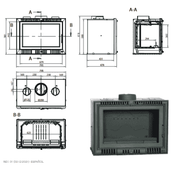 -VERMICULITA EN CÁMARA DE COMBUSTIÓN Y QUEMADOR EN ACERO INOXIDABLE