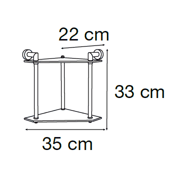 Estanteria de baño rincon doble fabricada en latón cromado de altísima calidad y con bandejas de vidrio 4mm