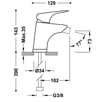 Monomando bide modelo Canigó fabricado en latón de alta calidad acabado Cromo Brillo