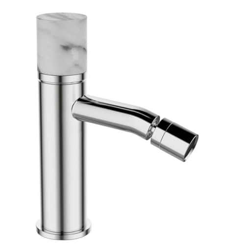 Monomando bide modelo Quo con terminaciones cuerpo en Cromo Brillo y maneta en Marml Blanco o Marmol Negro