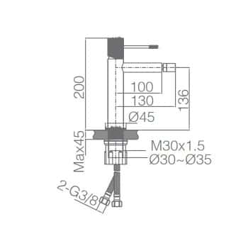 -Alimentación base con entrada 1/2” en taza en el lateral derecho o parte trasera de tanque