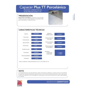 Cemento cola Capacer Plus TT Porcelánico para colocación de baldosas ceramicas en porcelánico
