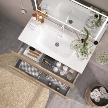 Conjunto mueble de baño Zao suspendido con 2 cajones extraibles en 5 acabados con laterales en Blanco y tirador metálico integrado en cajón