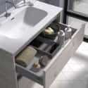 Mueble de baño suspendido modelo Poole en 3 terminaciones madera con caja en Blanco 1 cajon extraibles + 1 Cajón interior oculto con tirador integrado en cajón metálico