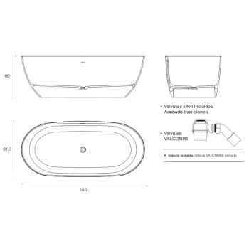 Bañera tipo exenta modelo Mie 160x80 fabricado en Solid Surface acabado blanco mate