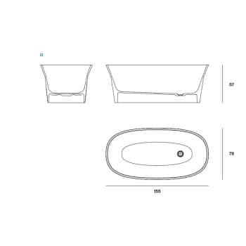 Bañera tipo exenta modelo Lenn 155x80 fabricado en Solid Surface acabado blanco mate