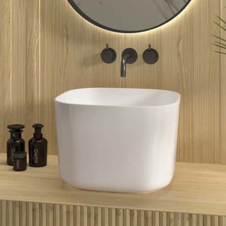 Lavabo sobre encimera redondo modelo Vito fabricado en porcelana vitrificada Blanco Brillo, Blanco Mate o Negro Mate
