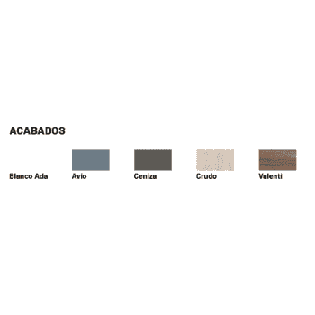 Acabados en Blanco Ada (Blanco Mate),Avio mate, Gris Ceniza mate, Madera Crudo o Madera Valentí