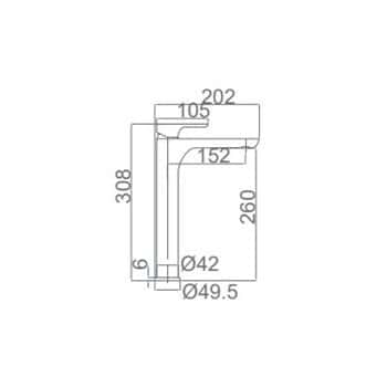 Altura para lavabos sobre-encimera desde base hasta boquillas espulsora de agua de 26cm