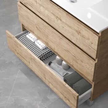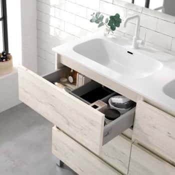 Conjunto mueble de baño Orosi suelo con 3 cajones extraibles en 5 acabados con tirador uñero integrado en cajón