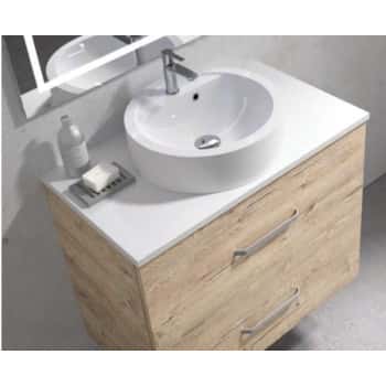 Conjunto mueble de baño Teide suspendido con 2 cajones extraibles en 4 acabados con laterales en Blanco y tirador metálico exterior en cajón