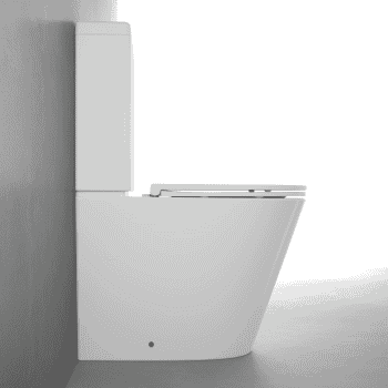 Inodoro de porcelana vitrificada modelo Aquitana en acabado Blanco Brillo, que destaca por su innovador diseño minimalista que dota a los baños de un sello inconfundible de modernidad