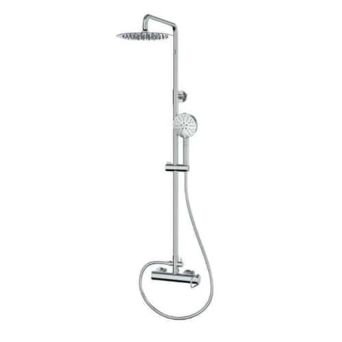 Columna ducha Escocia monomando fabricado en latón acabado cromo brillo junto a acero inoxidable