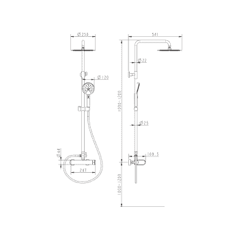 Columna ducha monomando modelo Steel en acabado Negro Mate o Cromo Brillo