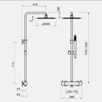 Columna ducha monomando o termostática modelo Loop fabricado en latón de alta calidad