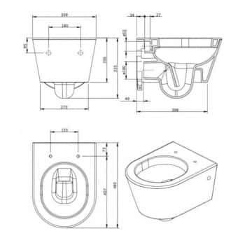 -Perno de fijación 180mm o 230mm (válida para cualquier inodoro suspendido del mercado que cumpla estas distancias)