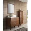 Incluye Mueble + Encimera de porcelana o Encimera Micro-Marmol con lavabo sobrencimera (Ovalo) / Espejo con marco madera / Columna Aux.