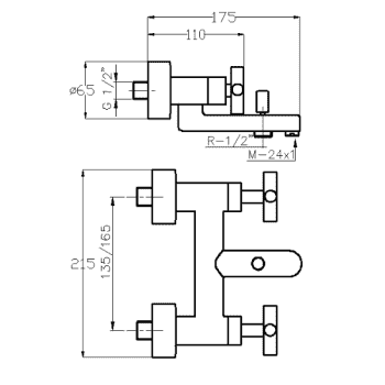Grifería monomando en latón negro mate y oro, 2 vías con caja de registro