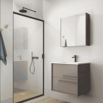 Mampara frontal STYLO corredera 1 hoja fija + 1 hoja corredera, acabado Black Gun Metal