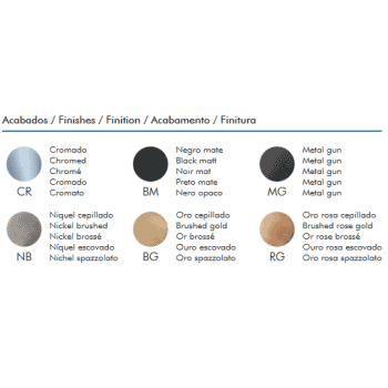 Opción acabados: Cromo Brillo, Negro Mate, Metal Gun Black, Oro Cepillado, Oro Rosa Cepillado o Niquel Cepillado