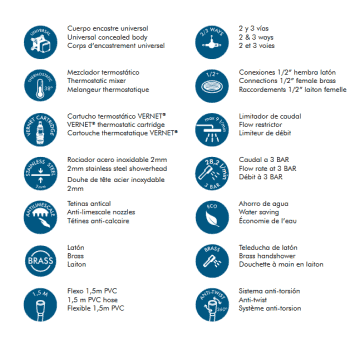 Griferia ducha modelo Loop fabricado en latón de altísima calidad con elección monomando o termostático