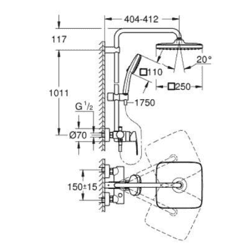 • Brazo de ducha mural 390 mm giratorio (14 047)
