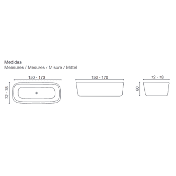 Bañera tipo exenta modelo Sella 150x72 / 170x78cm fabricado en Acrílico acabado blanco brillo