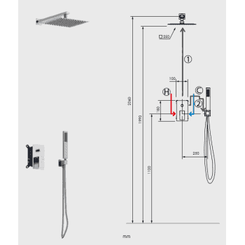 Columna ducha empotrada monomando modelo Cubo fabricada en latón de altísima calidad.